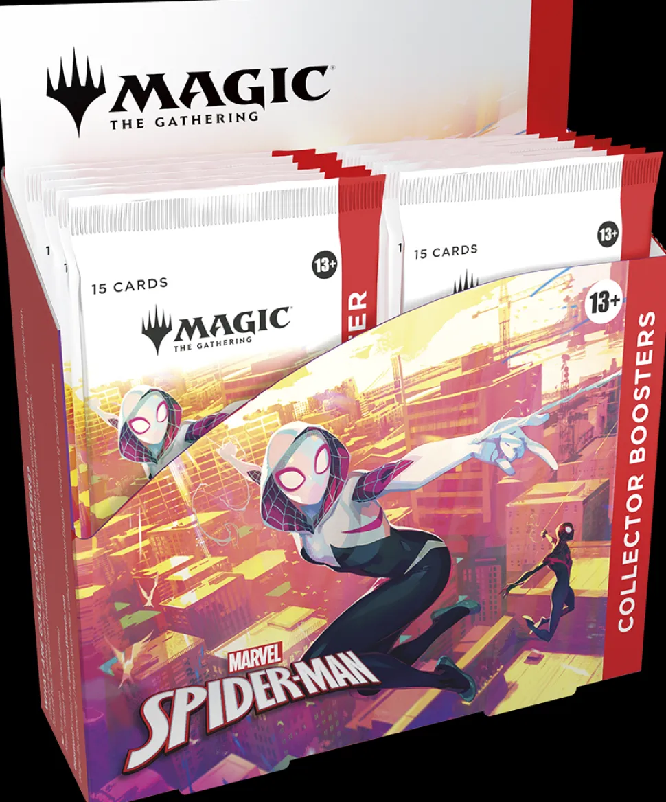 Collector Boosters gather all the coolest cards and foil treatments in one place! Each booster contains Rares and/or Mythics, Traditional Foils, a Borderless basic land, and more. Web-slinging heroes may encounter even more beautiful foils and picture-perfect lands. You could also find the headliner card—the most collectible pull of all!