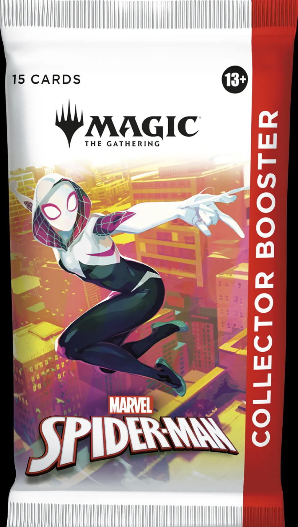 Collector Boosters gather all the coolest cards and foil treatments in one place! Each booster contains Rares and/or Mythics, Traditional Foils, a Borderless basic land, and more. Web-slinging heroes may encounter even more beautiful foils and picture-perfect lands. You could also find the headliner card—the most collectible pull of all!