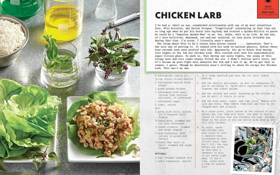 With great recipes, there must also come great responsibility . . . to share. Spider-Man’s decided to do just that, pairing recipes for his favorite New York City dishes with action-packed anecdotes. From Aunt May’s Wheatcakes to Miles Morales’s Arañitas to Wong’s Chai Tea Latte, Spidey turns each meal into a culinary adventure.