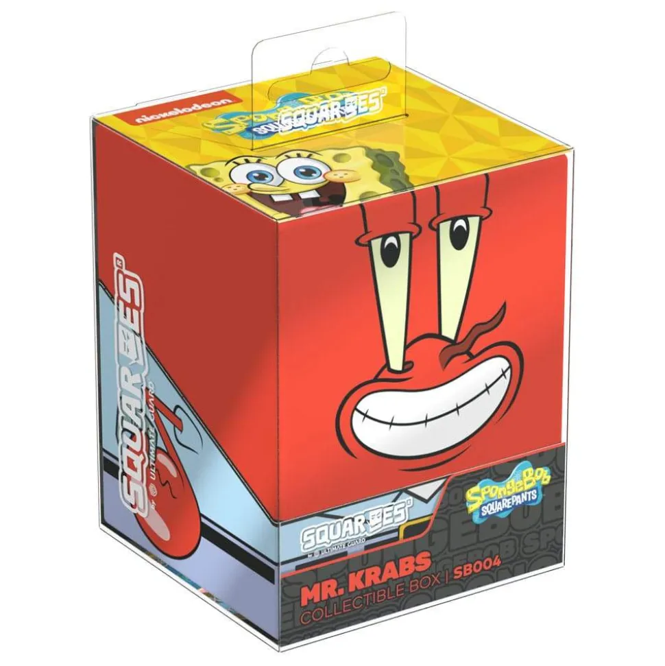 Collectible box for storing TCG decks, tabletop gaming accessories, and/or collectibles. The Mr. Crabs Squaroe from the SpongeBob SquarePants edition holds up to 100 cards in double protective sleeves if used as a deck box. Squaroes are made from 78% renewable recources and fit perfectly into the separately available Collectors Case.
