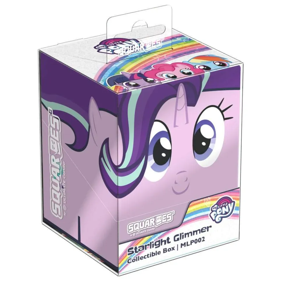 Collectible box for storing TCG decks, tabletop gaming accessories, and/or collectibles. The My Little Pony «Friendship is Magic» edition Squaroe holds up to 100 cards in double protective sleeves if used as a deck box. Squaroes are made from 78% renewable recources.