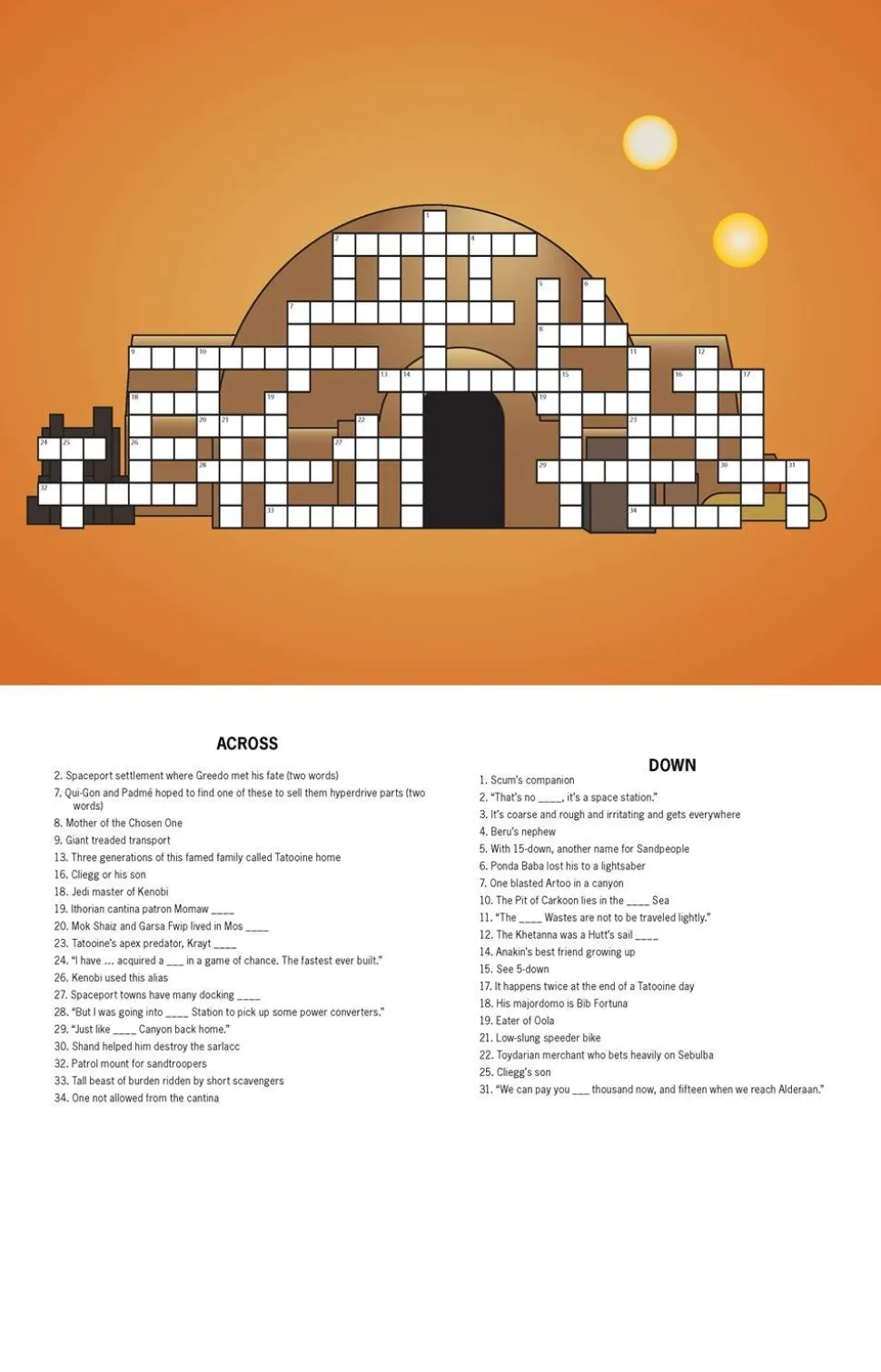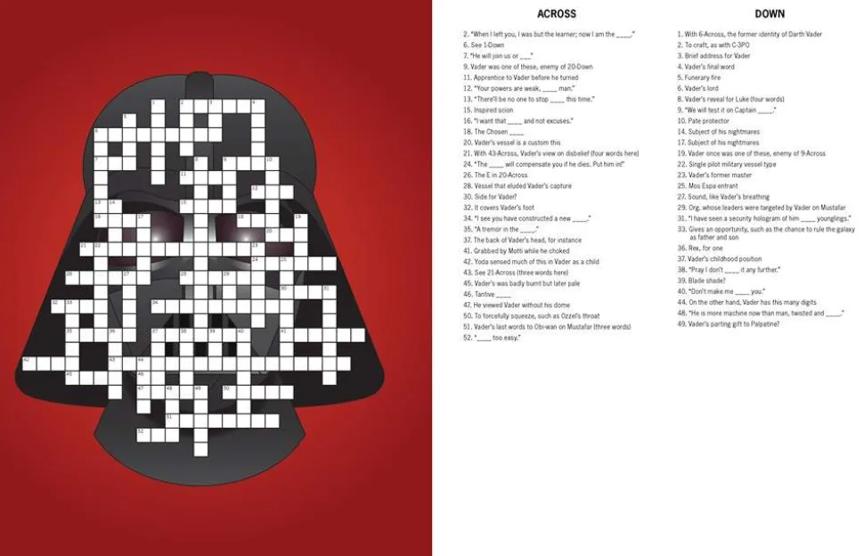 50+ PUZZLES OF DIFFERENT SKILL LEVELS: Themes include ships and pilots, Sith lords, scum and villainy, droids, Tatooine, the Galactic Empire, lightsaber duels, and much more! Puzzle difficulty levels range from Padawan puzzler to Jedi crossword Master.