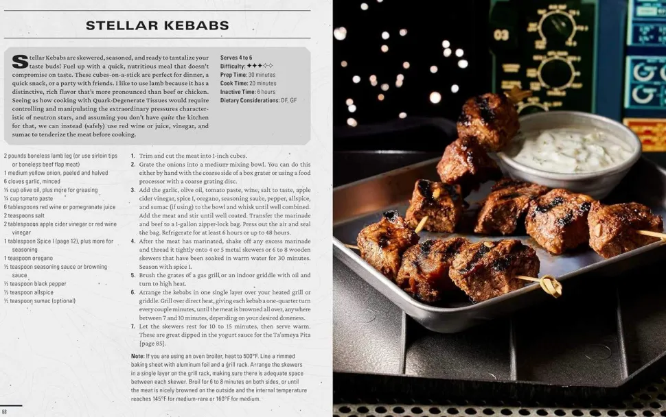 No matter how far you wander, good food can make the coldest reaches of space feel like home. Join fellow travelers on an epic culinary journey, sampling foods both alien and familiar. With recipes inspired by the in-game food from Neon to New Atlantis —like Midnight Delight, Stellar Kabobs, Can-Uck! Treats and more—this beautifully photographed culinary adventure brings the tastes of the Starfield universe right to your table. With straightforward instructions and clear guidance, these meals are perfect for chefs of all skill levels—whether or not gastronomy, scavenging, and dueling are among your three starter skills.