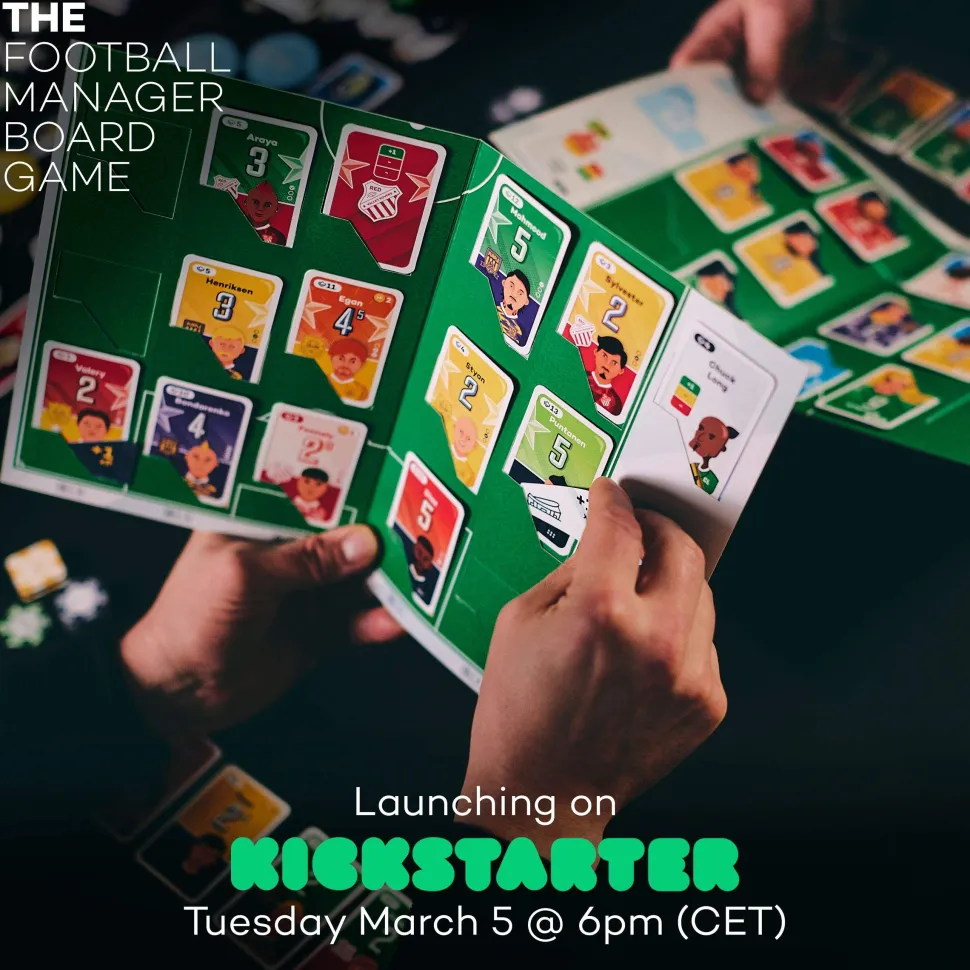 Superclub Rivals is a highly competitive card-based take on a fierce football rivalry. Two manager play a total of 9 matches against each other with an off-season (transfer window ++) between each one. Whoever wins the final match is the champion.The matches are quick, tactically challenging and super fun. Given that there are only 9, each one feels as crucial as a real-life local derby. The off-seasons prepare you for the next match. They are strategic, transformative and well … also super fun.—description from the publisher
