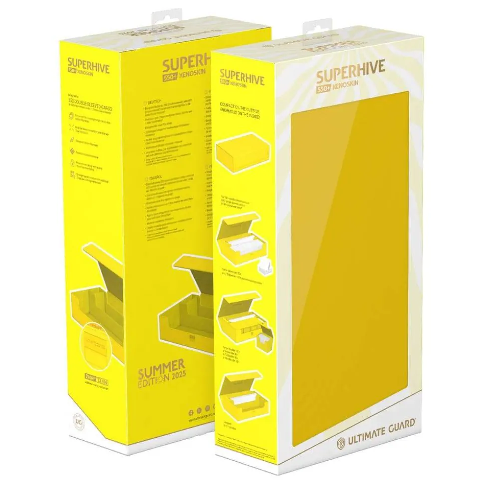 Catch the ultimate summer vibes with Ultimate Guard’s Superhive 550+ Xenoskin from the limited «Summer Edition 2025» in four vibrant new colors: Dandelion, Peach, Lime and Lagoon! The Superhive mass storage box is designed to hold two Play-Mats plus up to 550 double-sleeved cards (650 single-sleeved), four Sidewinder 100+ or five Boulder 100+ deck boxes and features an additional tray for accessories. A strong magnetic closure with additional ZnapClaw locking mechanism, resistant Xenoskin material, and quality microfiber inner lining guarantee the safe storage of the Superhive’s contents.
