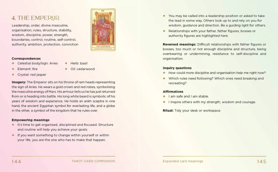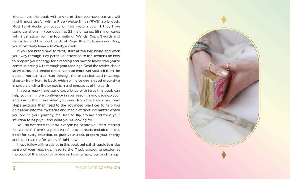 Tarot Card Companion is a comprehensive guide to mastering tarot reading. For both beginners and the more advanced, this book covers everything from tarot reading basics to deeper ways to work with your deck including tarot spells, manifestation techniques and reading for others.Discover interactive activities and practices and learn how to read the cards intuitively. Empowering meanings for each card, spread layouts and journal prompts are included to support you. This book will take you beyond surface-level readings, encouraging you to develop your intuition, gain clearer guidance and foster a deeper trust in your abilities – not just as a tarot reader, but within yourself. Take a deeper journey into the mystery of the tarot so that you can use your deck as a tool to live a more meaningful, magical and guided life.