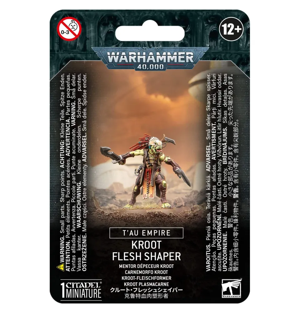 This multipart plastic kit builds a Kroot Flesh Shaper, a fearsome leader for the Kroot forces employed by the T’au Empire.