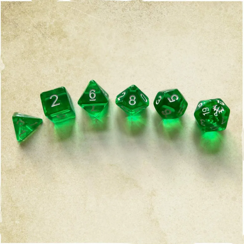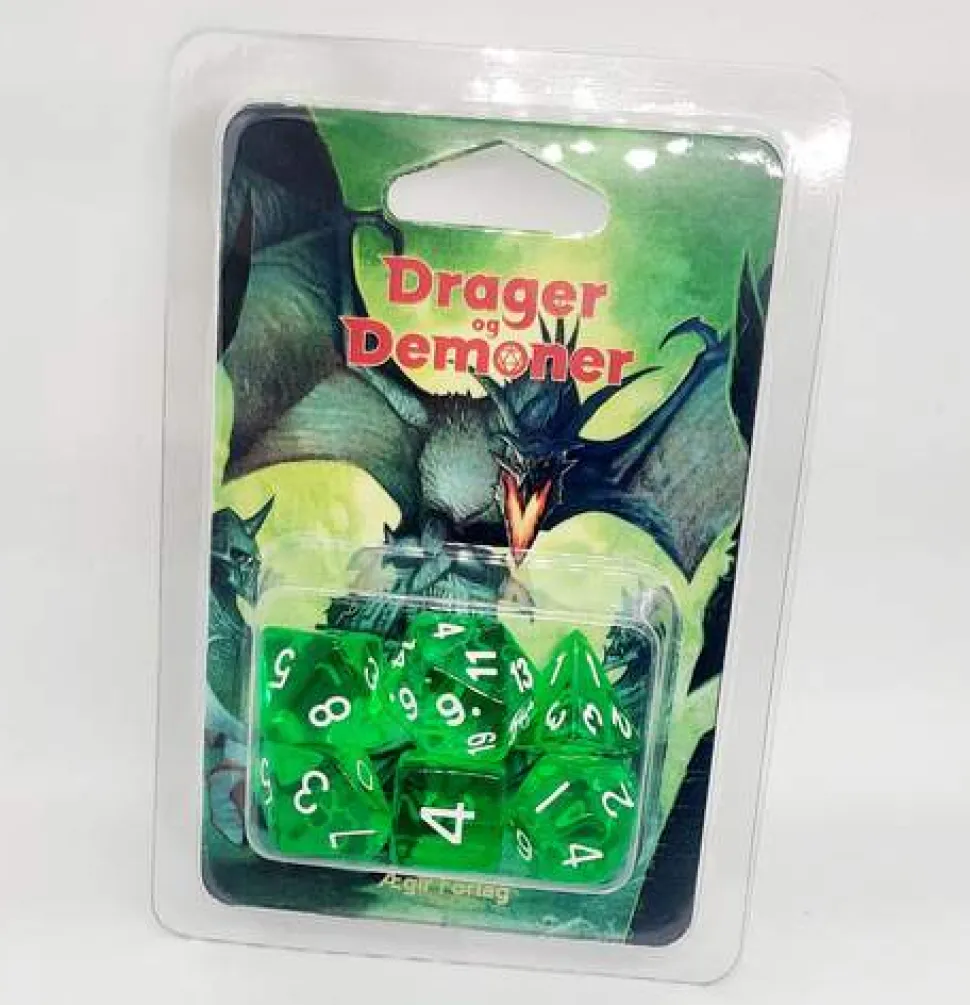 Dette er det offisielle terningsettet tilDrager og Demoner. Det inneholdet en av hver av følgende terninger: T4, T6, T8, T10, T12 og T20. T20-terningen har graverte spesialsymboler på tallene 1 og 20, for å markere dragekast og demonkast.