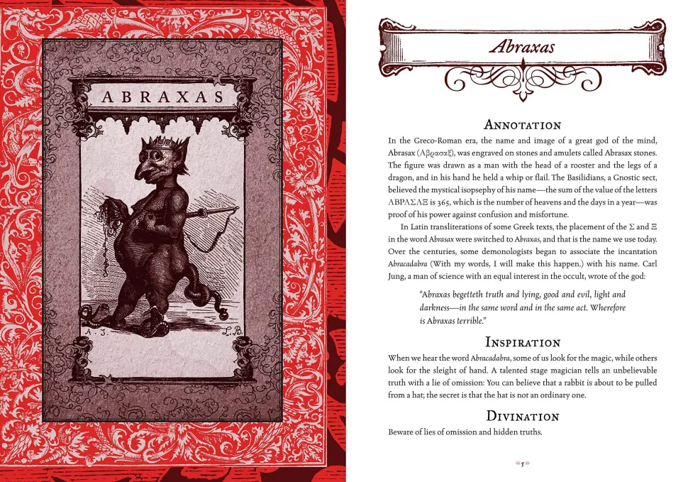 This fiendishly forbidden book and tarot card deck draw upon Le Dictionnaire Infernal (Infernal Dictionary), a legendary tome originally published in 1818 by French occultist Jacques Auguste Simon Collin. Working from centuries of arcane magical texts, Collin described ancient daemons and organized them into hellish hierarchies.