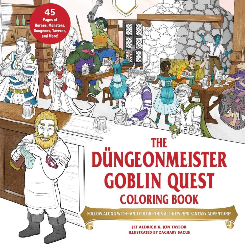 Düngeonmeister: The Goblin Quest Coloring Book is filled with coloring pages based on classic fantasy tabletop adventures, with playable game elements to inspire your next quest.