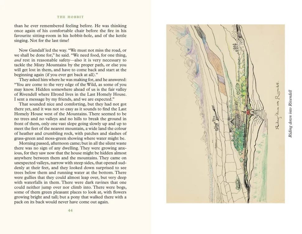 Tolkien’s own selection of finished paintings and drawings have become inseparable from his text, adorning editions of The Hobbit for more than 85 years. But the published art has afforded only a glimpse of Tolkien’s creative process, and many additional sketches, coloured drawings and maps – although exhibited and published elsewhere – have never appeared within the pages of The Hobbit.