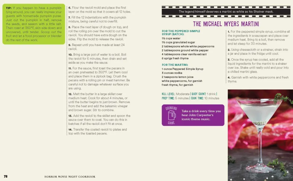 If you’re looking for kitschy Pinterest recipes like coffin-shaped cookies or zombie finger sandwiches, look elsewhere. With The Horror Movie Night Cookbook, you’ll enjoy thoughtful and tasty food and cocktail pairings inspired by the actual content of chilling classics like Jaws, Psycho, Scream, The Conjuring, The Evil Dead, Halloween, and more of horror’s most frightening favorites! Inside you’ll find recipes like: