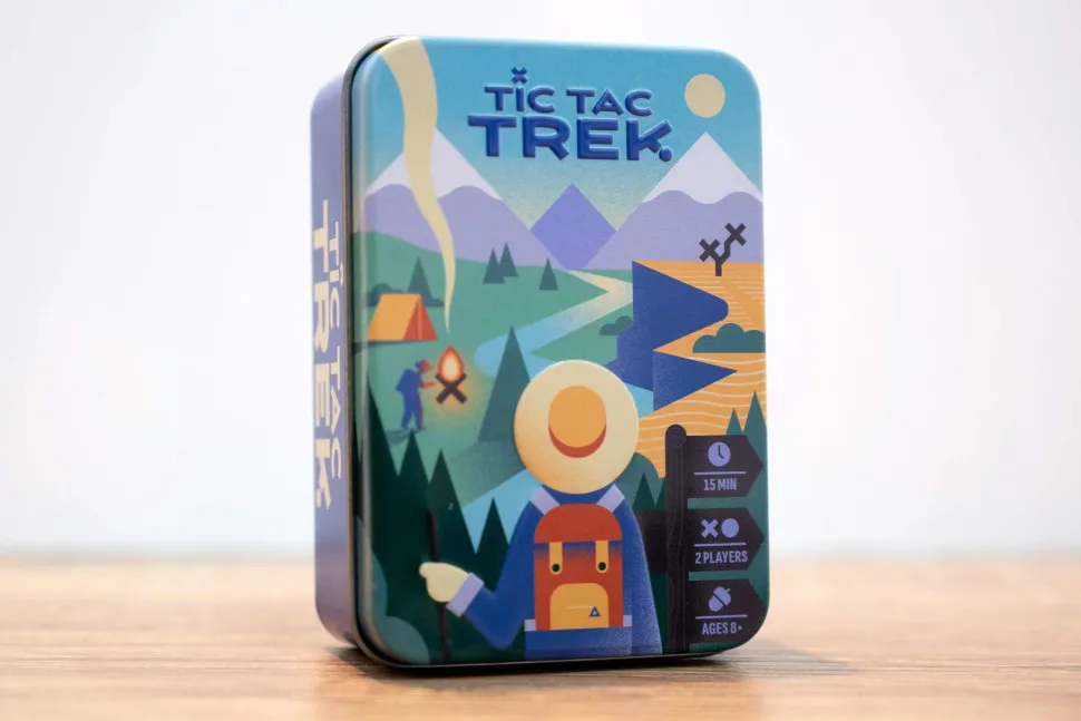 Explore the wilds in a 2-player tile-laying simple strategic game. The closer you camp to the unexplored wilderness, the higher you’ll score.Tic Tac Trek is a light strategy game for 2 players. Players take turns drafting tiles from a bag to place in the shared play area. If the tile placed forms 3 in a row, the player can place one of their campfire tokens in the tile just played. Play continues until all tiles have been placed from the bag. Players will then score their campfire tokens that are in the play area. Each empty space surrounding the campfire scores 1 point. The player with the most points wins.