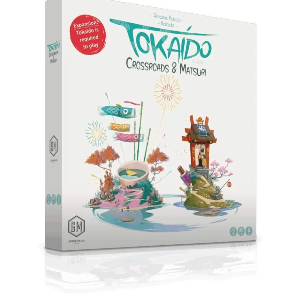 Crossroads (referring to alternative choices along the path) adds cherry trees in full bloom, luxurious bathhouses, good luck charms, calligraphy, legendary objects, and even clandestine gambling rooms to the Tokaido journey! Matsuri (the Japanese word for festivals), triggered by the arrival of the Travelers at intermediate Inns, enliven the path with unique events. A number of new Travelers are now also available for the trip.