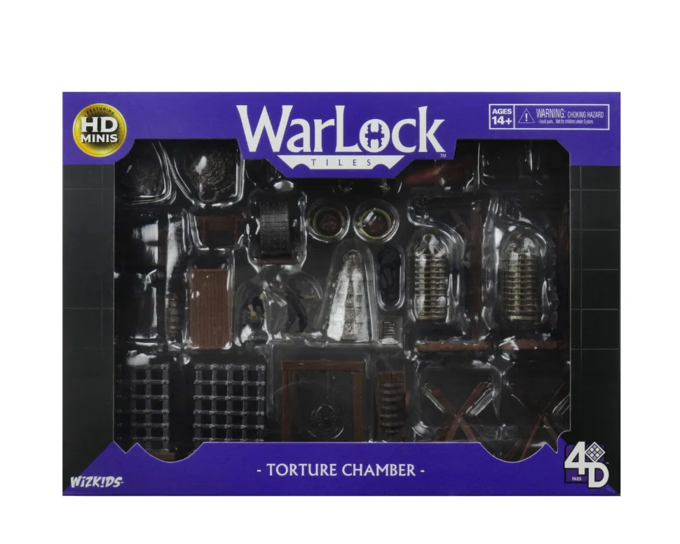 Create an immersive experience for everyone with the WarLock Accessory: Torture Chamber! With modular options and over 20 pieces, set the scene for the echoing screams of prisoners with these torture devices! A great addition to any miniature terrain collection! Set includes: 2x Cage, 2x Chains, Iron Maiden, 2x Stock, 2x Torture Cross, 2x The Rack, Drowning Through, 2x Hanging Cage, Table, Assistant, Brazen Bull, 2x Fire Bowl (with clear fire element), Spike Chair, Pendulum, 2x Fire Torch Lamp on Wood Stand, Surgical Tray, The Catherine Wheel, and a Torturer! Contents subject to change.
