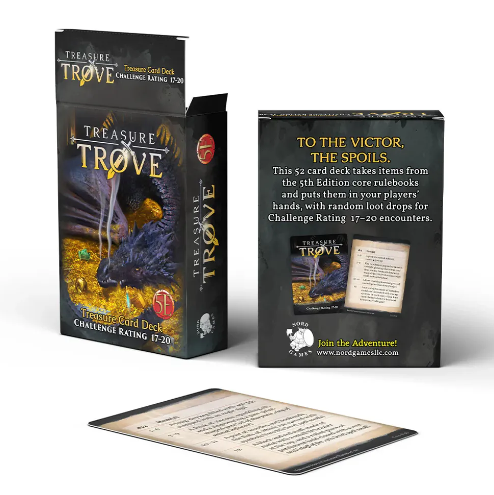 If you are a DM, or even a player, that wants to make the next campaign more interesting, we urge you to consider the Treasure Deck CR 17-20. This innovative deck, among other of our Nord Games expansion decks, is specially designed to optimize your experience while playing top role playing games. Experience it for yourself today!