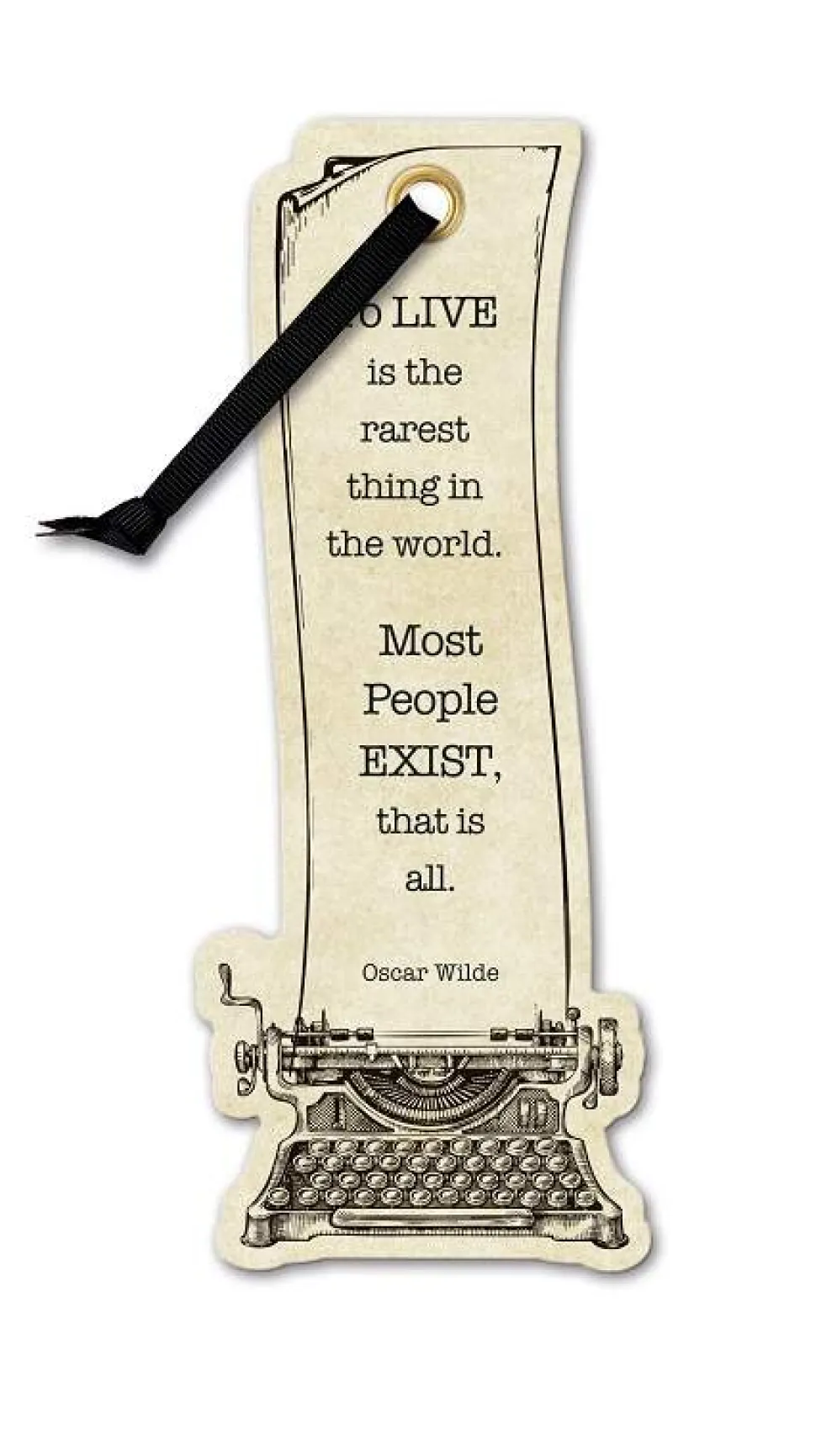 Bokmerke «Typewriter» i Academia Collection i kraftig kvalitetskartong med tekstilbånd. Bokmerket er trykket på FSC MIX Paper C134008.