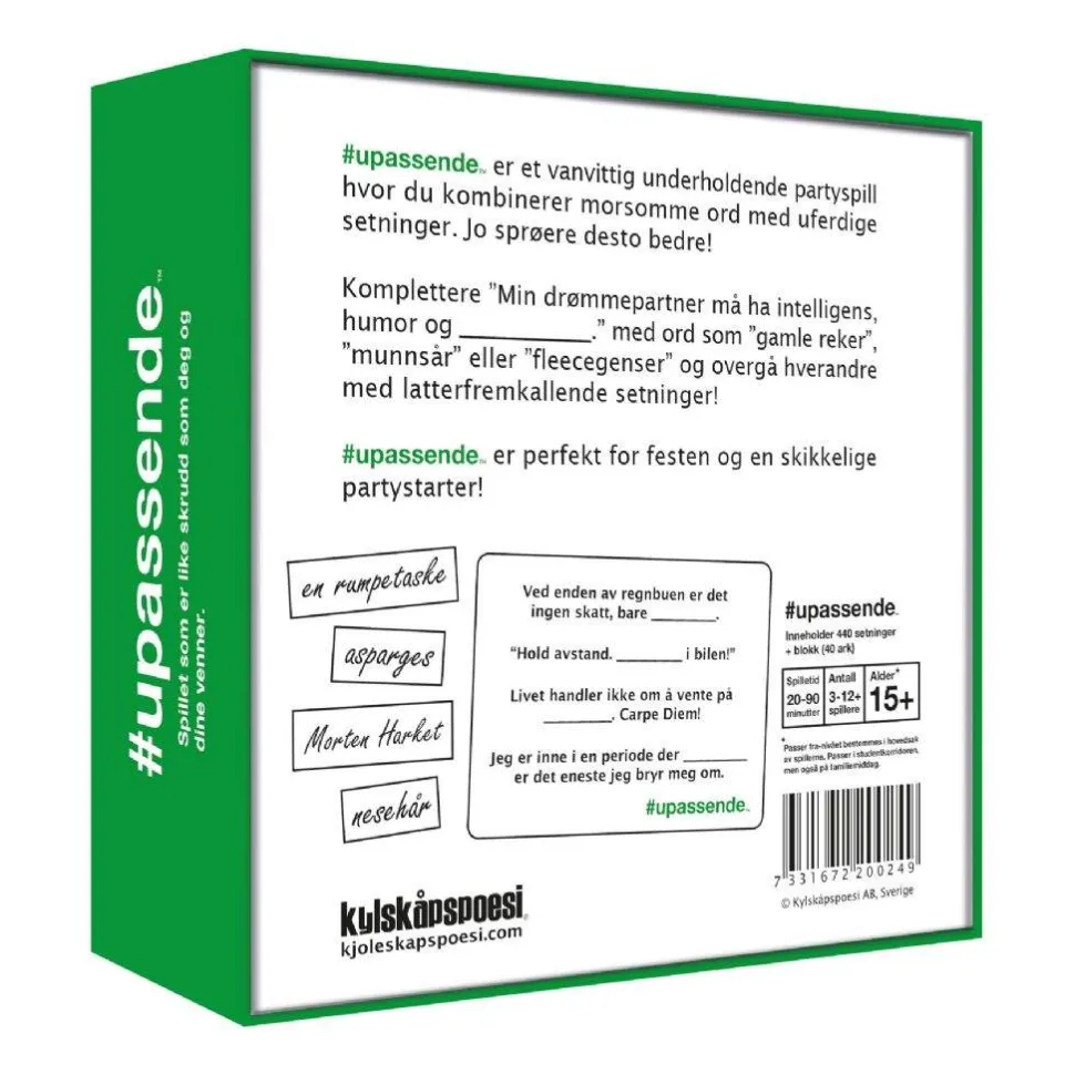 #upassende er et vanvittig underholdendepartyspill hvor du kombinerer morsomme ord med uferdige setninger. Jo sprøeredesto bedre!