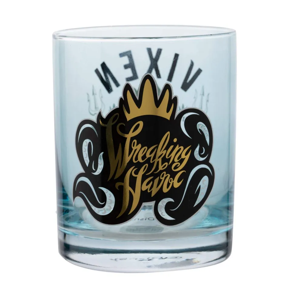 The blue glass showcases a shiny finish, complete with printed image of the Ursula from The Little Mermaid and ‘Vixen – Drop Dead Gorgeous’ title. On the opposite side sits a complementary silhouette image alongside ‘Wreaking Havoc’ wording.