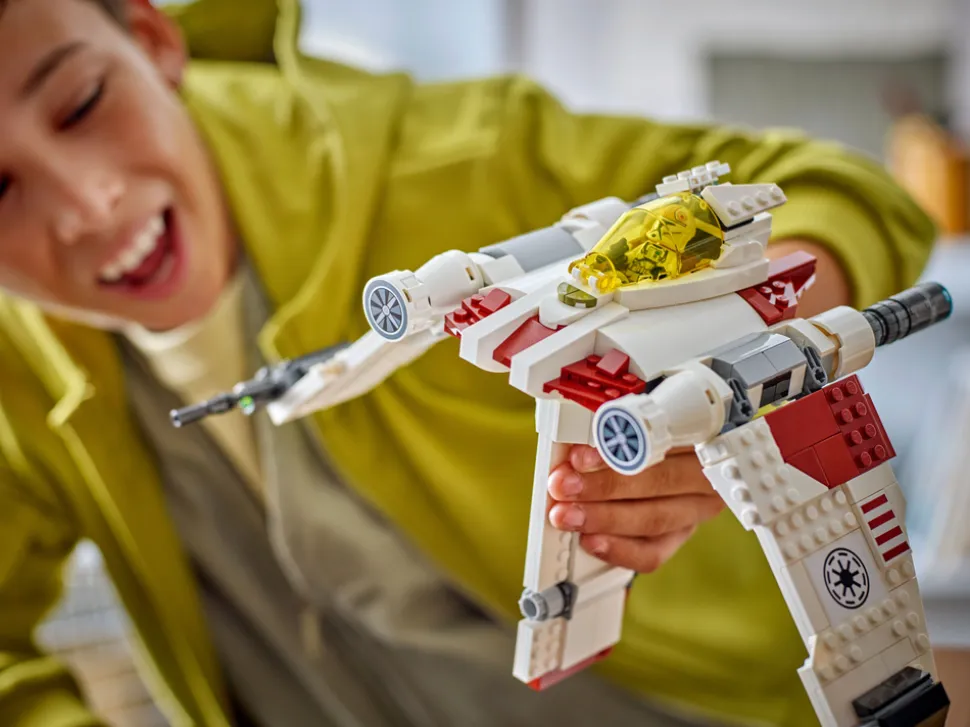 - Klossebygd LEGO® Star Wars™ stjernejager – modellen har cockpit som kan åpnes, vinger som kan settes i fly- og landingsmodus, og to knotteskytere for fantasifull kamplek