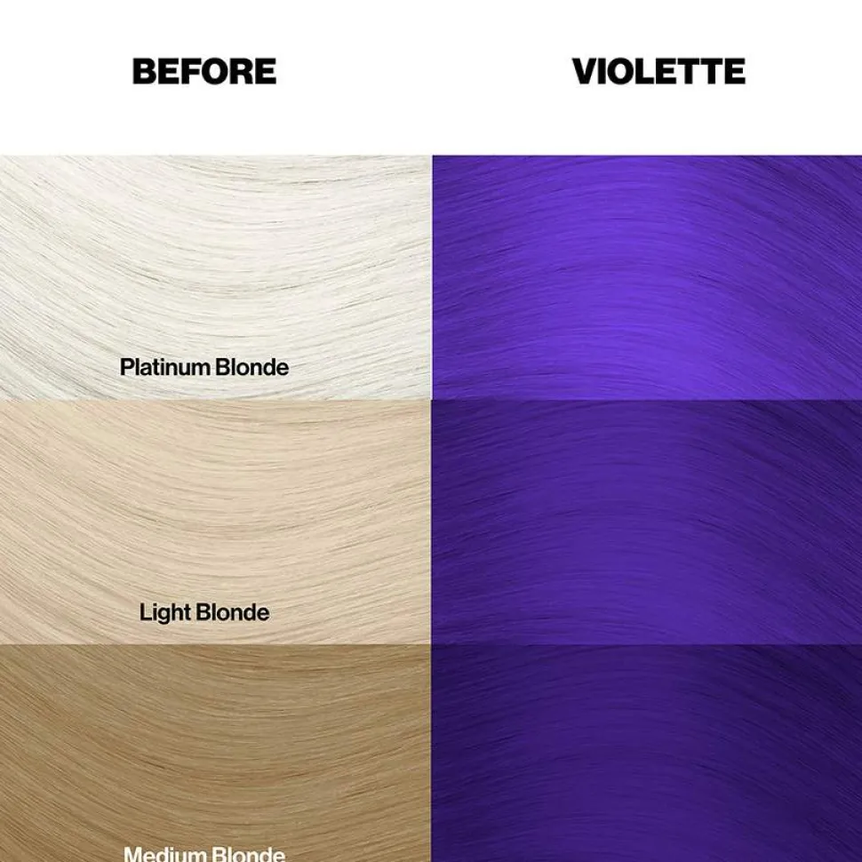 Som med alle Crazy Color farger, jo lysere base, jo mer livlig resultat. For å få best resultat, anbefaler vi å bleke til nivå 8 eller høyere. Bruk denne hårfargen rett fra flasken på ferdigbleket hår. Sjekk ut fargeoversikten for en indikasjon for resultatet. Påfør på rent, håndkletørt eller tørt hår. Du trenger ikke å blande fargen med noe. Påfør fargen i deler av gangen for å få dekt håret fullstendig. La det prosessere i håret i 15-30 minutter, eller lengre om det skulle trengs. Skyll ut med kaldt vann, ikke bruk sjampo!