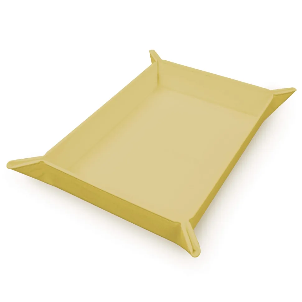 The Vivid Magnetic Foldable Dice Tray offers a safe and portable space for all your dice rolling needs. These trays are no bigger than a sheet of paper (8.5 in. x 11 in.) when folded flat, and utilize small magnets in each corner so you can quickly pop up the side walls, perfect for keeping stray dice contained when rolling. Simply unfold the magnetic dice tray again to store it in your backpack, character folio, binder, or favorite board game box. Featuring a soft leatherette material in one of the Vivid Collection’s signature bright colors, there is a dice rolling tray for every gamer!