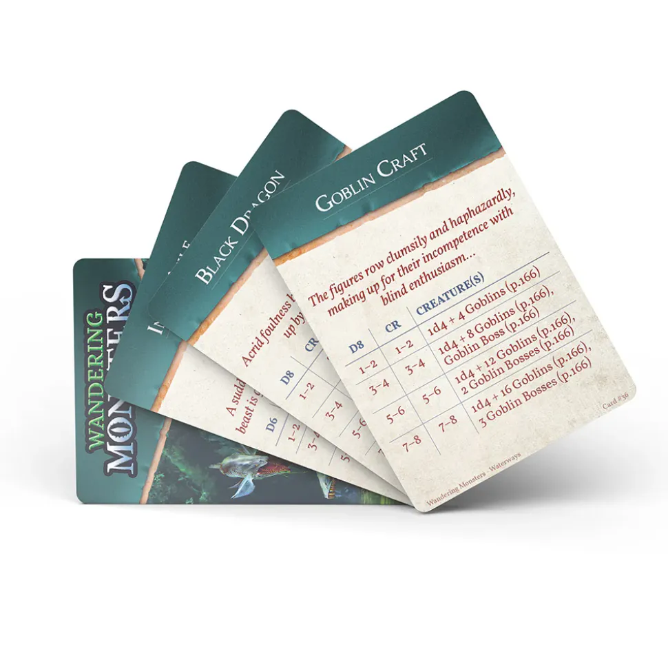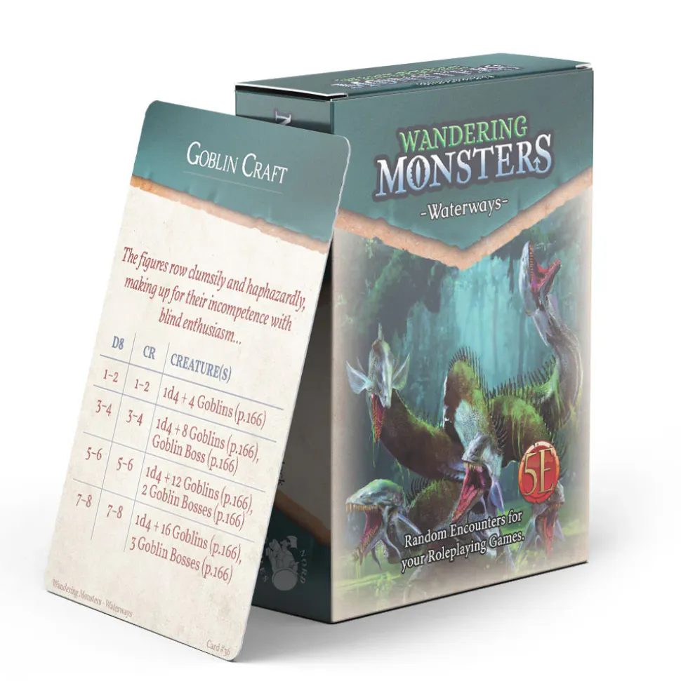 This innovative expansion deck contains 52 cards, each with 3-5 possible encounters for water environments for the 5th Edition. Pick the encounter based on the appropriate challenge rating, or roll a die. Order your monster expansion pack today to add exciting new monsters to the waterways of your tabletop RPG games.
