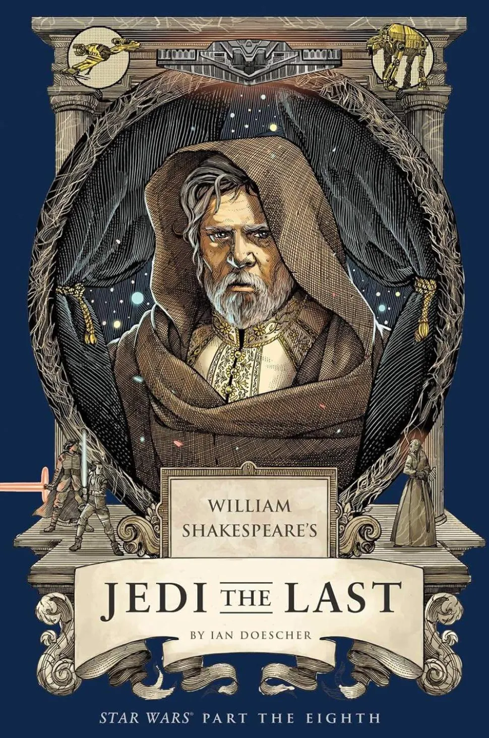 Experience the story of The Last Jedi all over again, now with all the drama and prestige of Shakespearean theater! Stunning text lovingly and accurately rendered in the meter and style of the Bard himself includes reimagined dialogue from each character from the movie, stage directions, and plenty of Easter eggs, all alongside twenty gorgeous woodcut illustrations that put an Elizabethan twist on the iconic Star Wars characters.