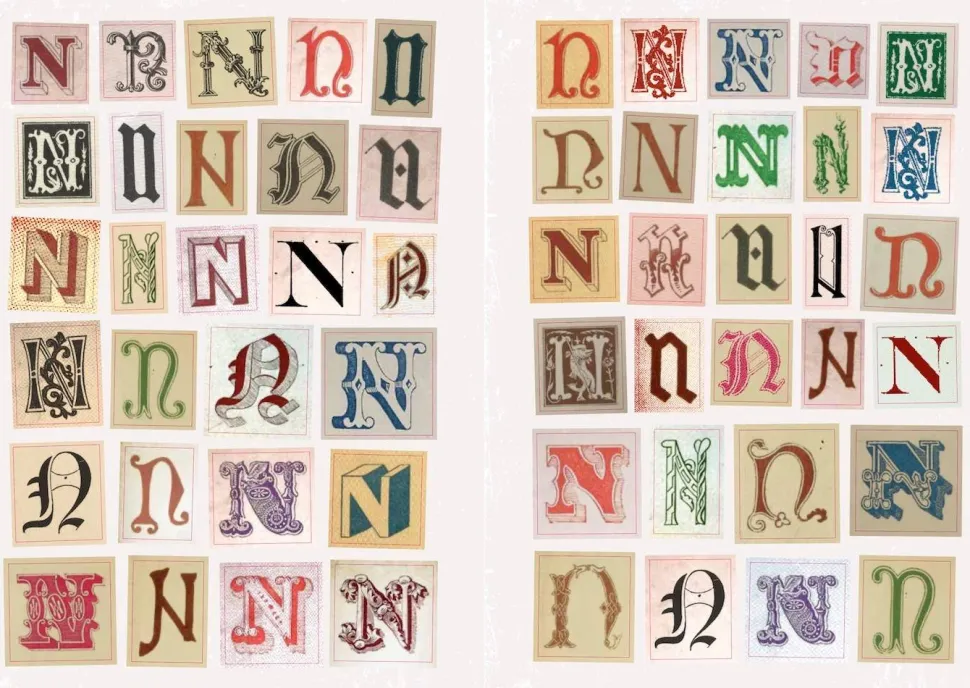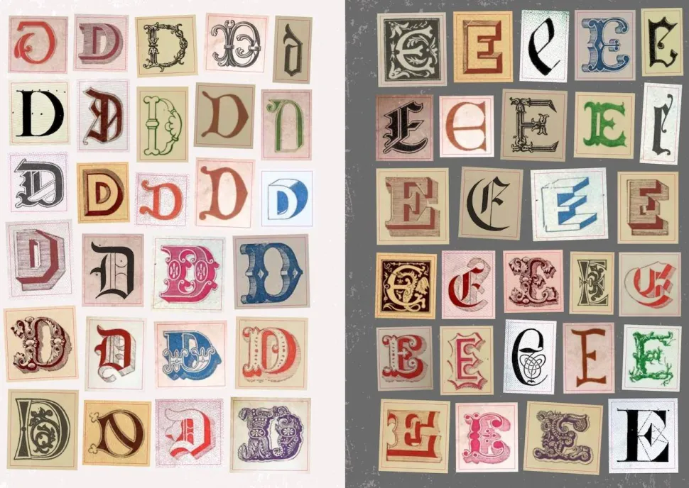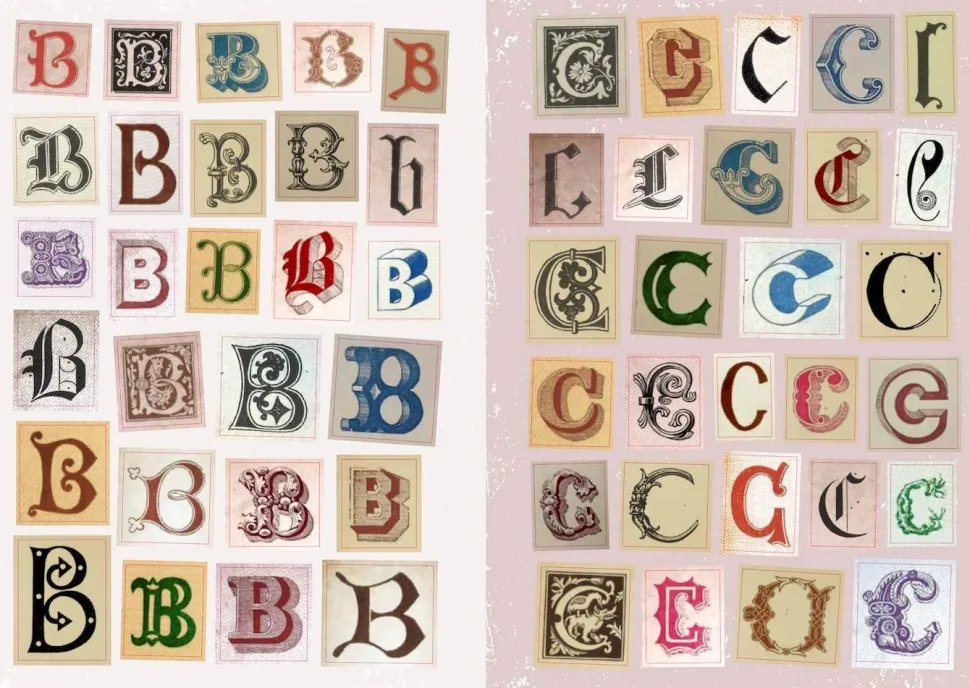 Personalize your junk journal, send mysterious messages, or simply stick your name on stuff! There are endless uses for these beautiful sticky letters. With complete alphabets in a variety of antique typographic styles – from medieval gothic to renaissance fonts, and Victorian alphabets – you’re free to create any message you want. Organized by letter, with plenty of accents, punctuation marks, numbers and even some antique typographical curiosities, this book is the perfect addition to your junk journal or crafting supplies.