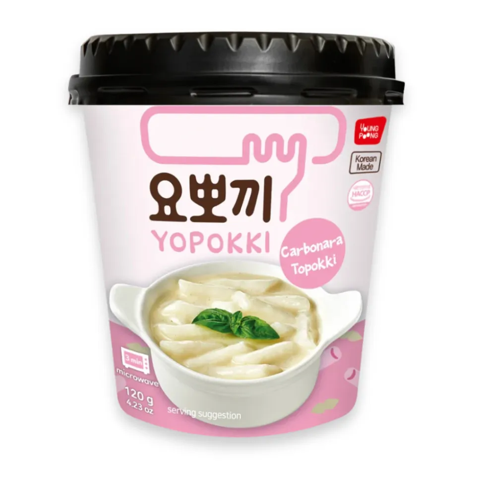 Yopokki Carbonara er en ferdigvariant av tteokbokki med carbonarasmak. Retten kan lages i mikrobølgeovnen. En rask og god variant av en klassisk Koreansk rett.