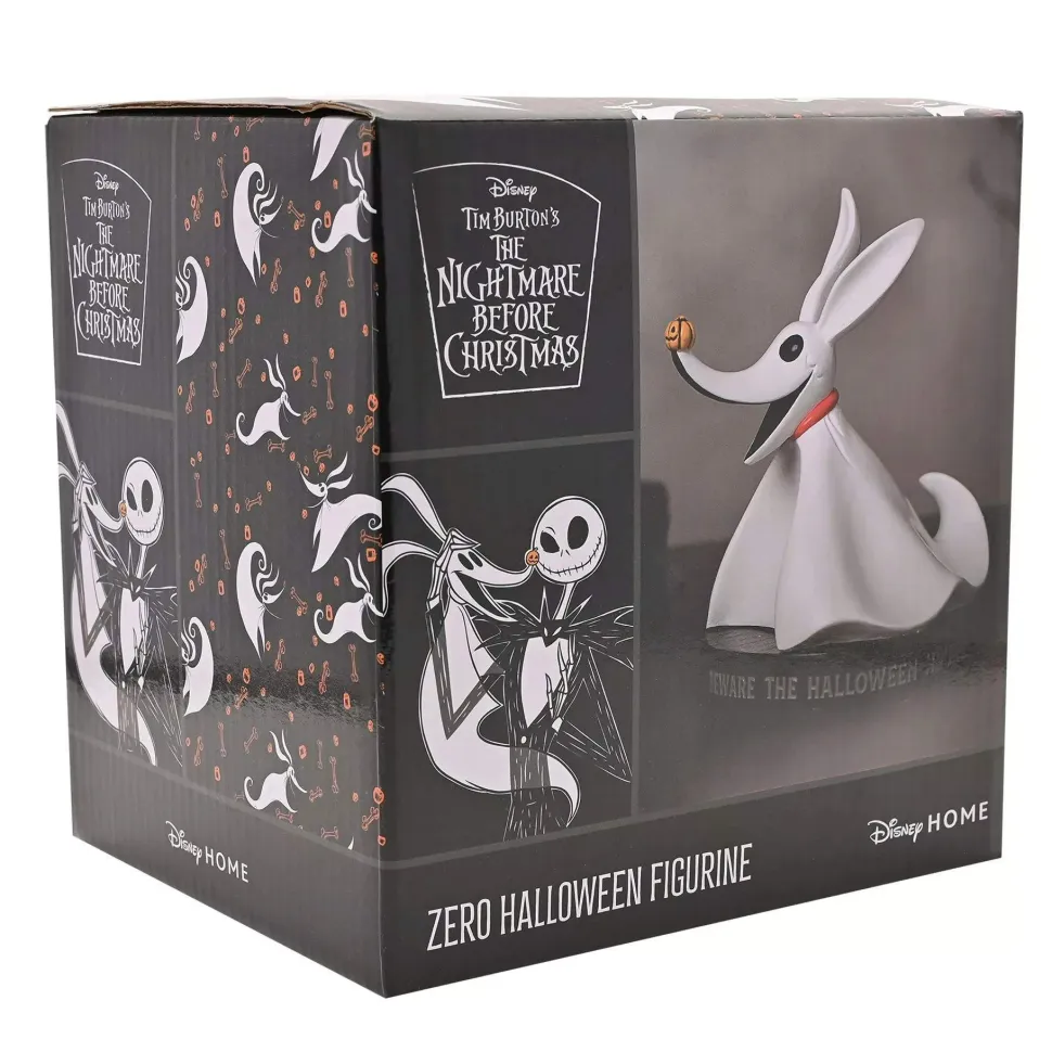 Add spooky charm to your Halloween decor with the Disney Nightmare Before Christmas Zero figurine. Featuring the loyal ghost dog from Tim Burton’s classic, this figurine captures Zero’s playful spirit with his glowing pumpkin nose and expressive ears. • Detailed sculpt of Zero on a themed base with «Beware the Halloween Hounds» text • Black and white color scheme true to Zero’s ghostly film appearance • Officially licensed Disney collectible